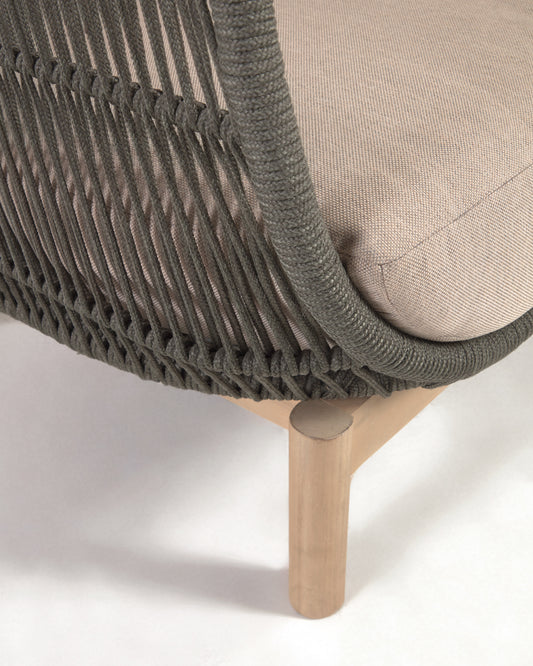 - 3 seater outdoor sofa made of solid acacia wood and hand-woven polyester cord.