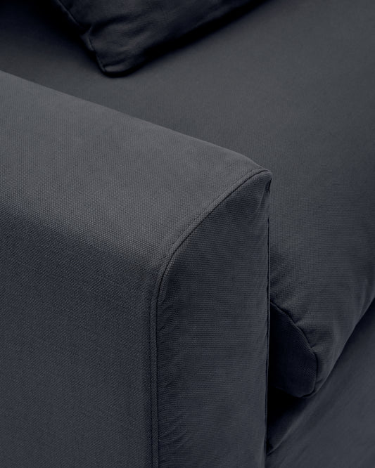 Nora 3-seater sofa with removable cover with linen and cotton cushions in anthracite grey 240cm