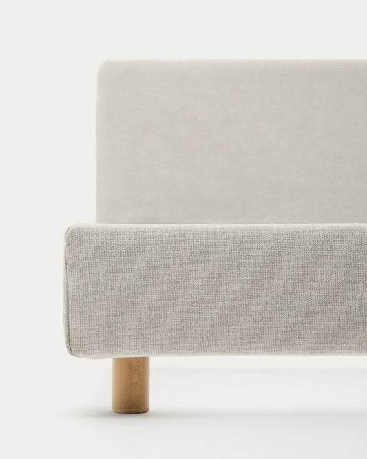 Pearl chenille Valma bed with removable cover and solid beech wood legs for a 90 x 200 cm mattress