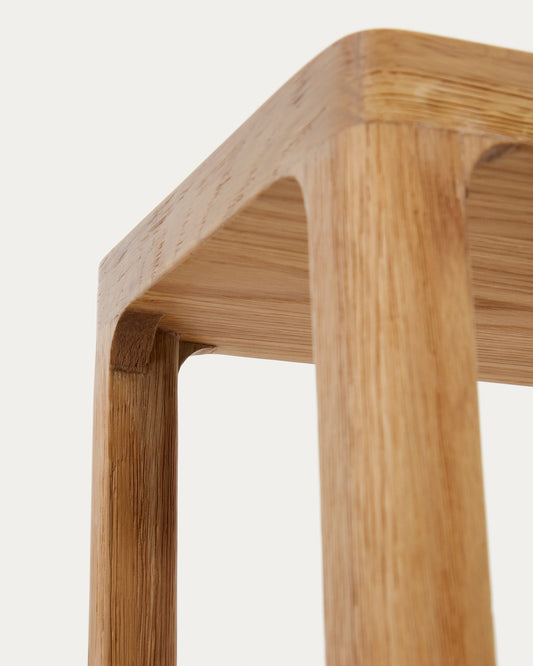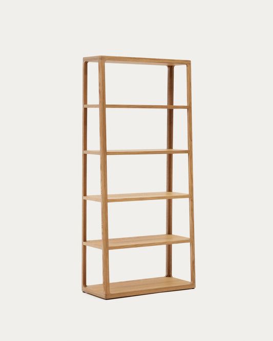 - Shelf with solid oak frame, natural finish, and brushed effect.