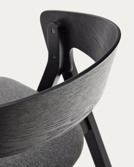 • Upholstered seat in dark gray chenille with a fine structure, made from recycled polyester.