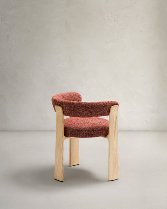 Granite 3-legged chair terracotta chenille and solid ash wood in a natural tone finish FSC 100%