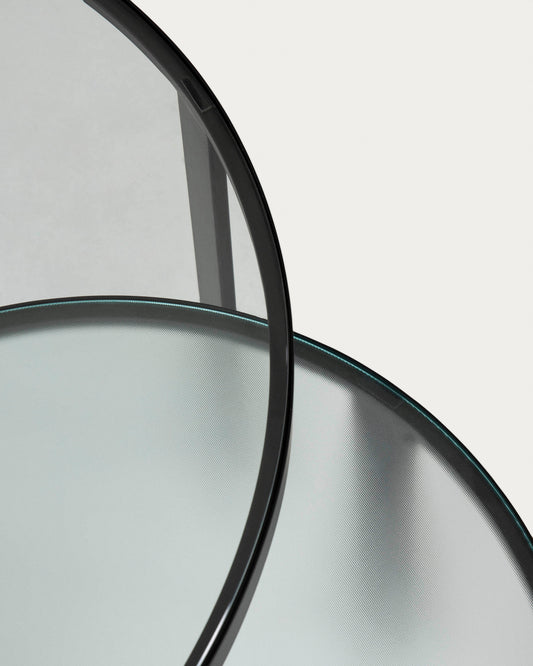 This set of 2 side tables of Ø 70 cm and Ø 50 cm is made to be your perfect ally in any occasion, alone or with your guests, just taking a small space. You will love the contrasts between the two tables, one with a transparent top and, the other, made with textured glass.