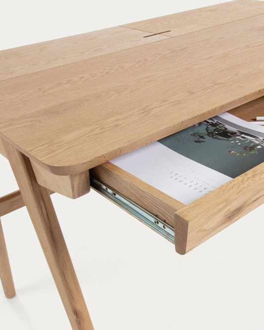 Table with 2 drawers, in natural ash veneer and feet in solid ash wood.