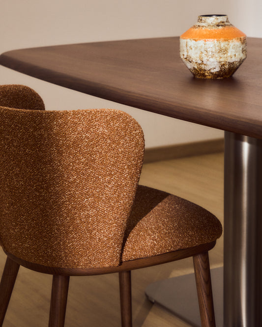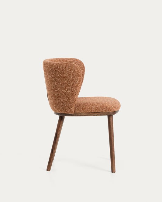 Ciselia terracotta thick chenille chair with solid ash wood legs with walnut-coloured finish FSC Mix Credit