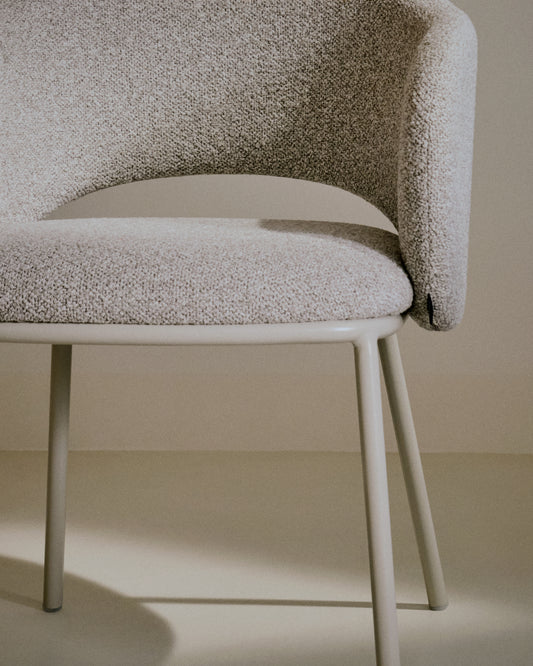 Maina chair in thick beige chenille and steel legs in a beige finish, FSC Mix Credit