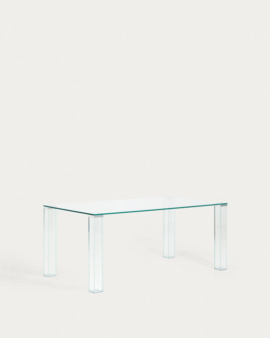 Adularia is a minimalist design in tempered glass with straight lines and corners. The high-strength tempered glass enhances the light and a sense of spaciousness, while its geometric elegance adds a contemporary touch to any setting.
