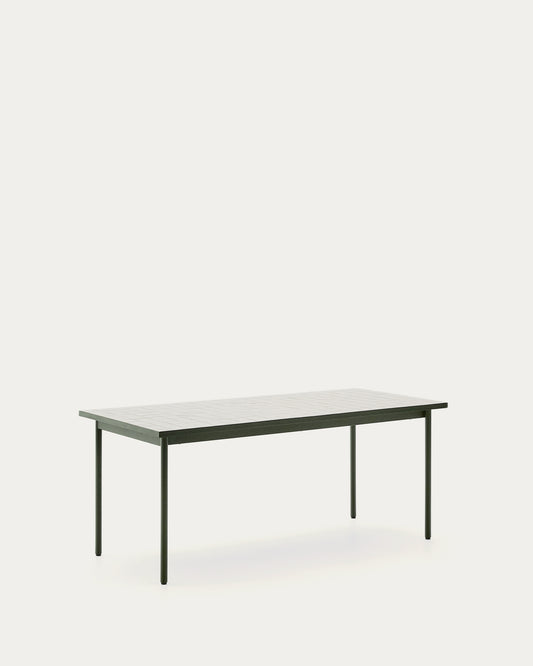 Maurina outdoor table in green galvanised steel with ecru-colored tiles 182 x 91cm