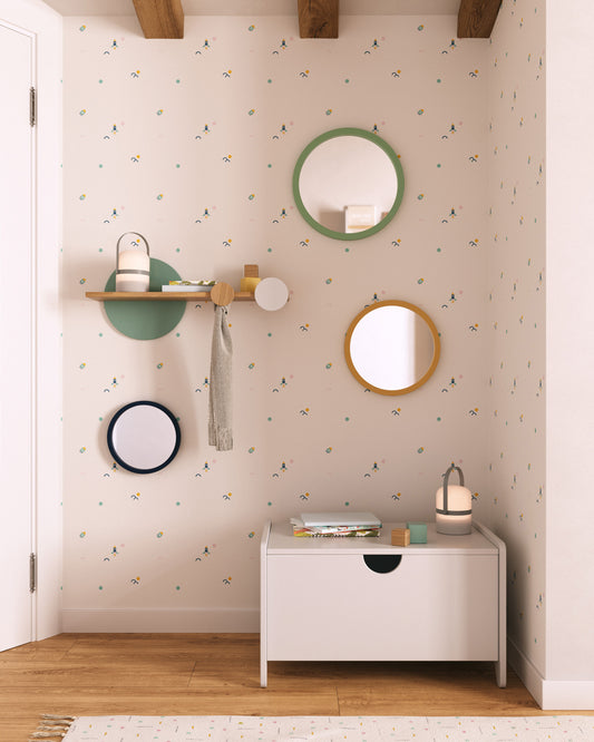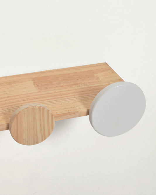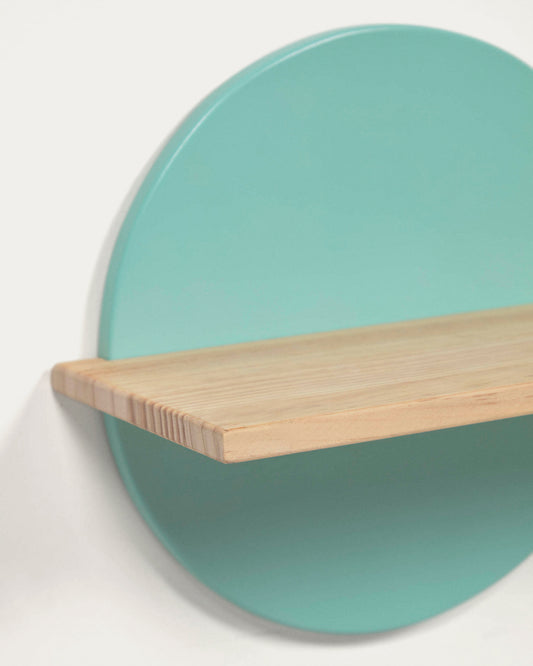 Diti shelf in solid natural pine and white and turquoise MDF 60 x 26 cm