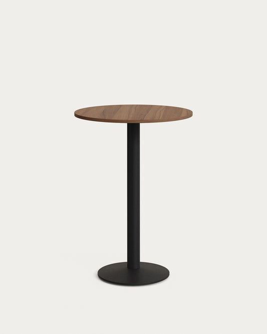 Esilda high round table in walnut finish melamine with metal leg in a painted black finish, Ø60x96cm