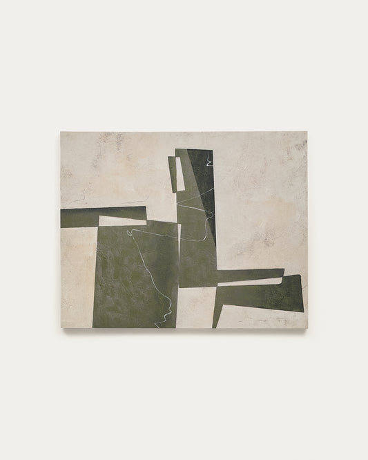 - Canvas with abstract shapes in different shades of greens.