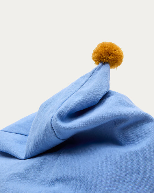 Olvi blue, cotton pouffe with mustard-coloured tassel, Ø 60 cm