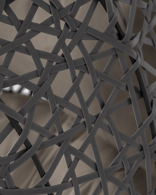 - Hanging armchair made of hand-braided dark grey polyrattan.