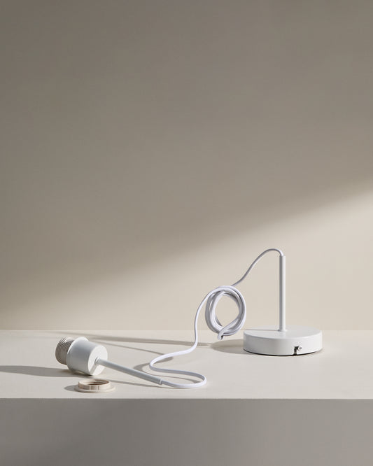 Fluvia metal lamp fitting in a white finish, 250 cm