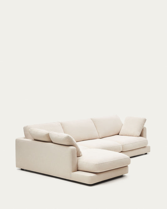 Gala 4-seater sofa with left chaise longue in beige chenille FSC Mix Credit 300cm