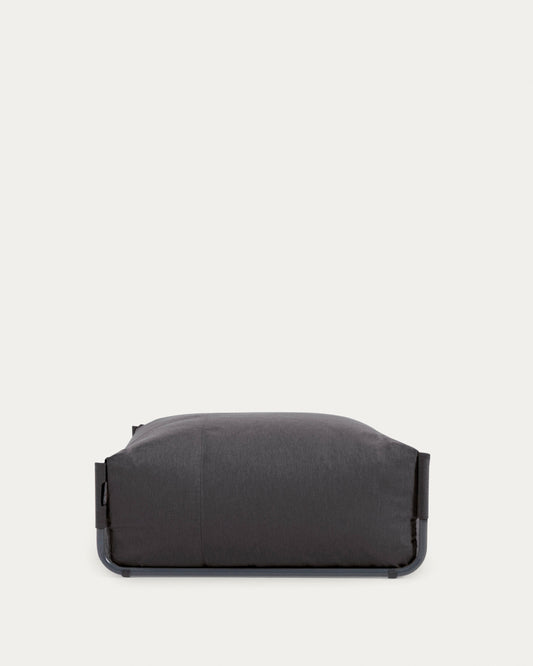 Square modular 100% outdoor sofa pouffe in dark grey with black aluminium, 101 x 101 cm