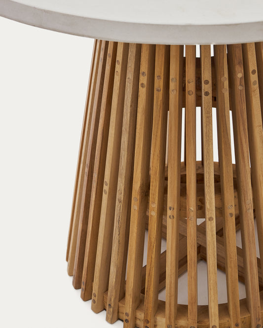 Alcaufar round outdoor table made of solid teak wood and grey cement Ø 90 cm