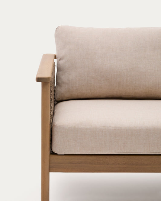 - Set consisting of one 2-seater sofa, 2 armchairs and one coffee table in acacia wood.