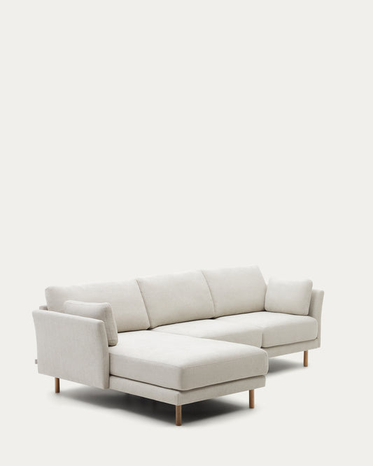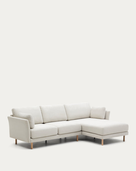 Gilma 3 seater sofa w/ right/left-hand chaise longue in chenille pearl, natural legs, 260 cm