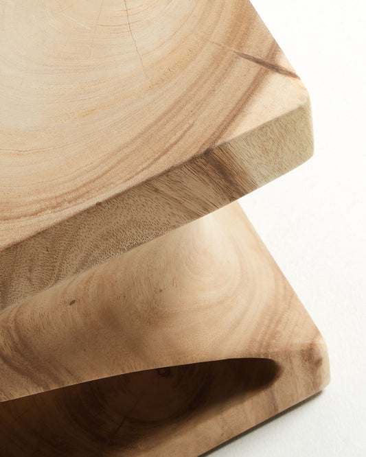 Hakon solid rain tree wood side table with carved interior, 30 x 30 cm