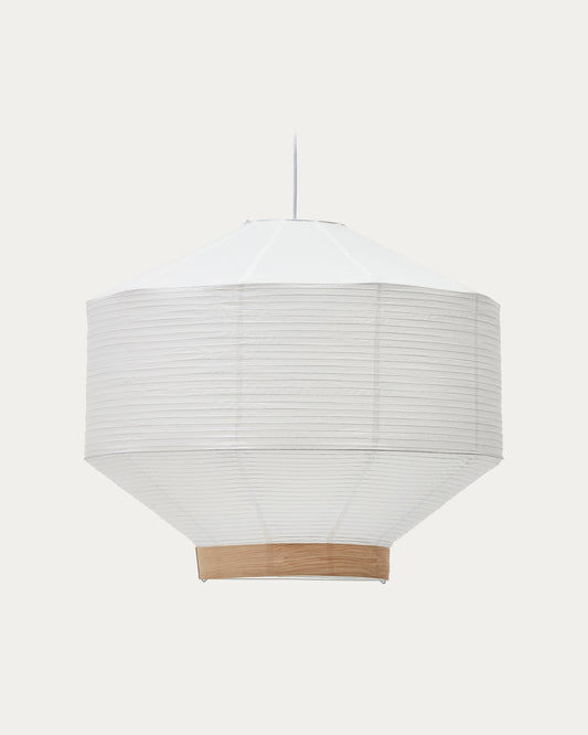 - Hila ceiling lamp screen in white paper with natural wood veneer Ø 80 cm