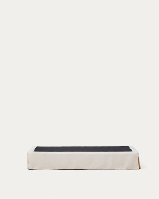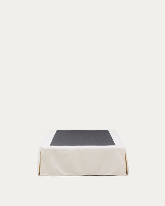 The base with removable cover is designed for comfort and practicality with an elegant finish. Its structure incorporates an upholstered base, so it does not require a bed base, providing firmness and stability for the mattress. The cover, made from high-quality, thick chenille, has a velvety feel and a stain-resistant treatment for easy care. The fabric is OEKO-TEX® STANDARD 100 certified, which guarantees safe and environmentally friendly production. Manufactured locally in Europe using responsible processes, this base contributes to reducing CO₂ emissions and features a durable, functional design with attention to every detail.