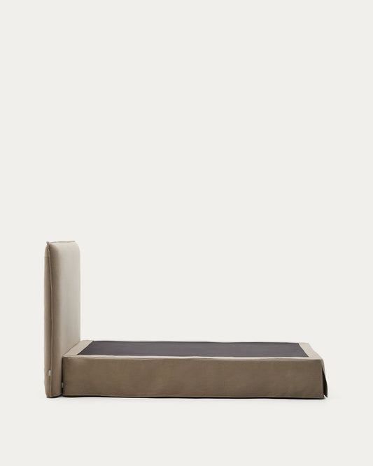 Jaira bed with removable linen and cotton cover in taupe for a 90 x 200 cm FSC Mix Credit mattress