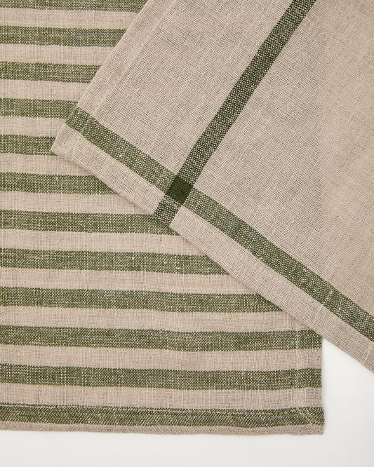 Jarne set of 2 placemats in beige and green linen 35 x 50 cm
