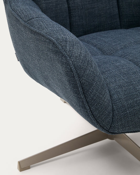 - Swivel armchair with cushioned arms upholstered in structured fabric with blue recycled polyester. It has a medium seat firmness.