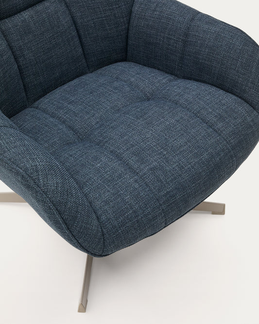 Jaspe blue swivel armchair with grey-finished metal, FSC 100%