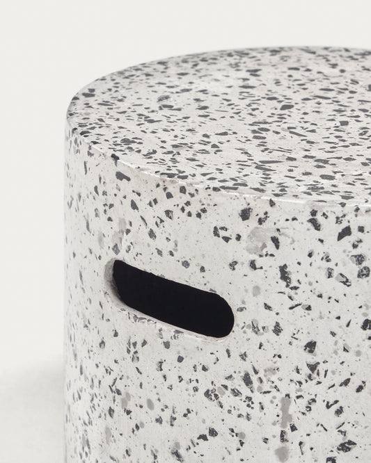 Jenell outdoor terrazzo footrest in white, Ø 35 cm