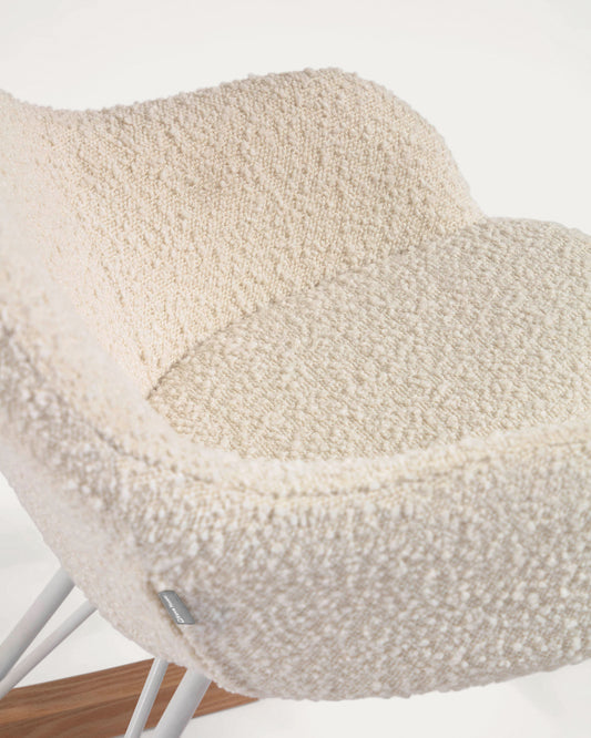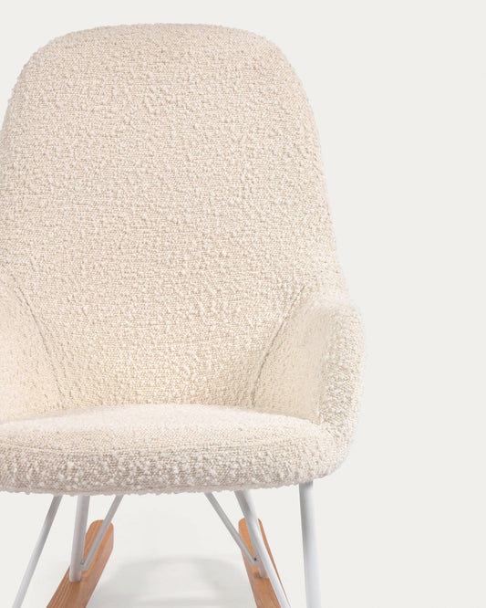 - Metal frame finished in white paint with solid wooden rockers with ash veneer.