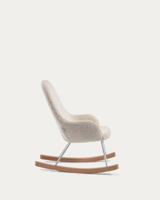 - Child's rocking chair upholstered in a fleece-style fabric.