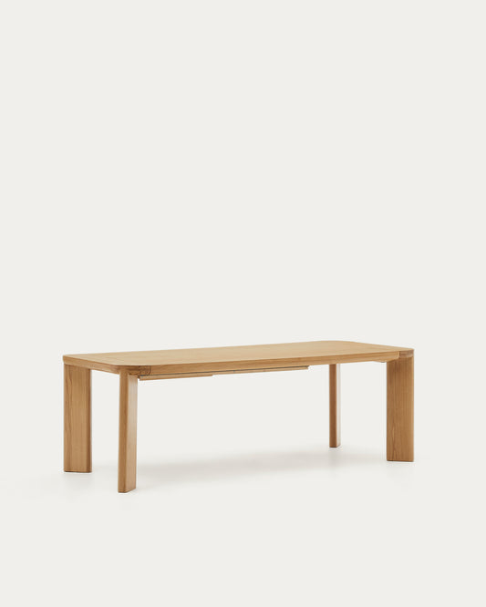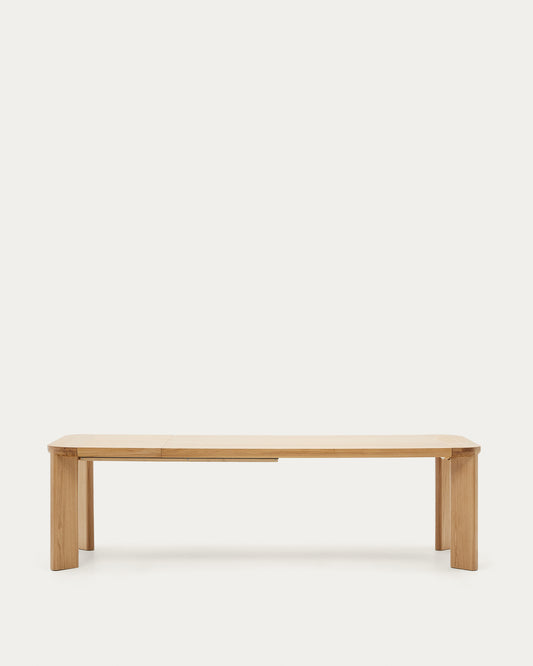 - Extendable table with veneered table top and solid oak legs in a natural finish.