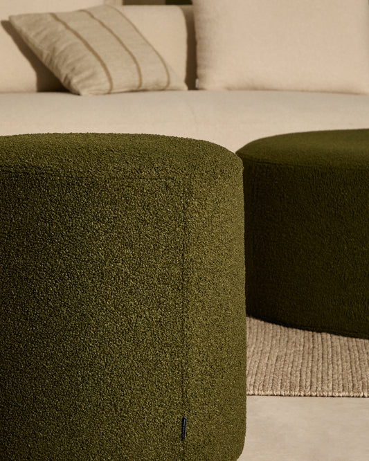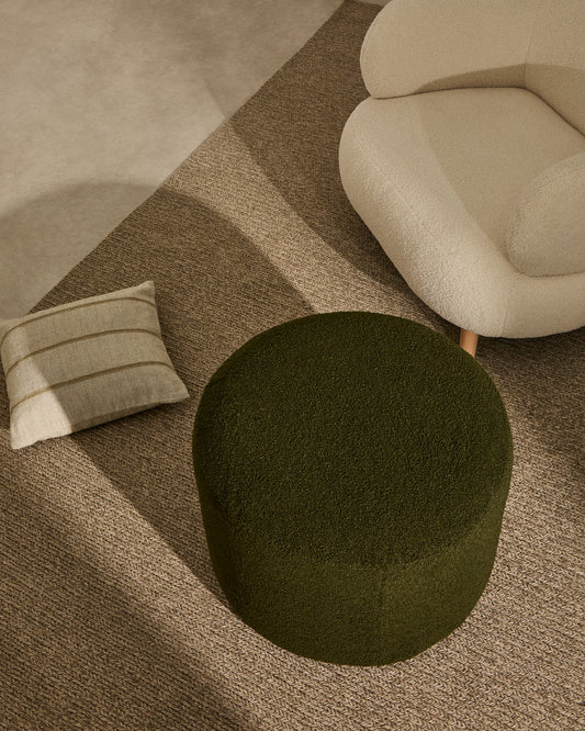 Kaeli footrest with removable cover in green bouclé Ø 43 cm