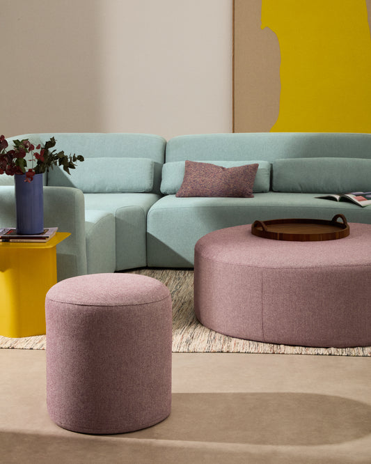 - Footrest with removable cover upholstered in two-tone structured fabric with 70% recycled cotton and HydroClean Protect, an antibacterial treatment that makes it easy to clean with water.