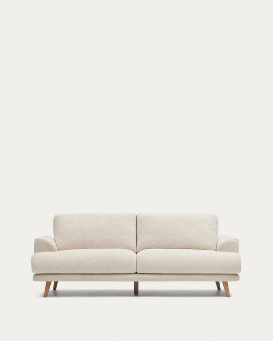 Karin 2-seater sofa in beige chenille with solid beech wood legs 210cm