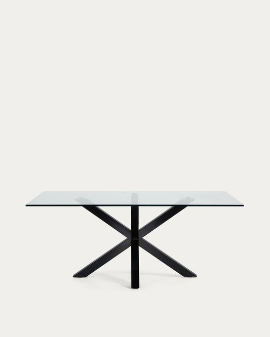 Argo glass table with steel legs with black finish 200 x 100 cm