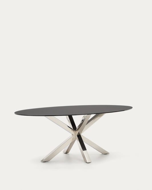 Argo oval table in matt black glass and stainless steel legs Ø 200 x 100 cm