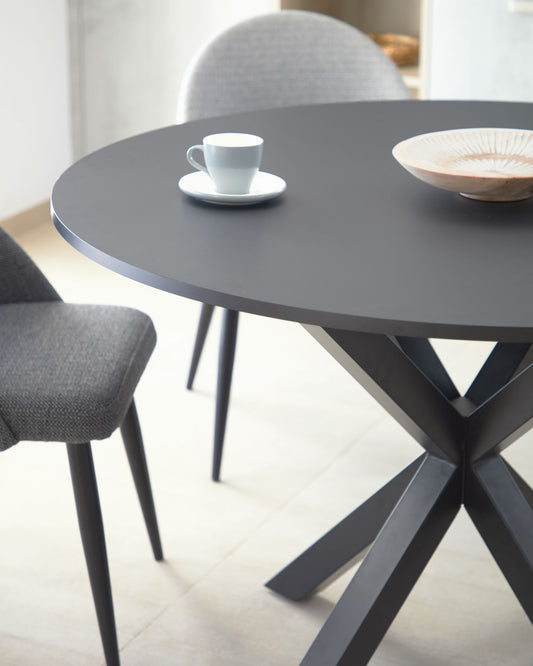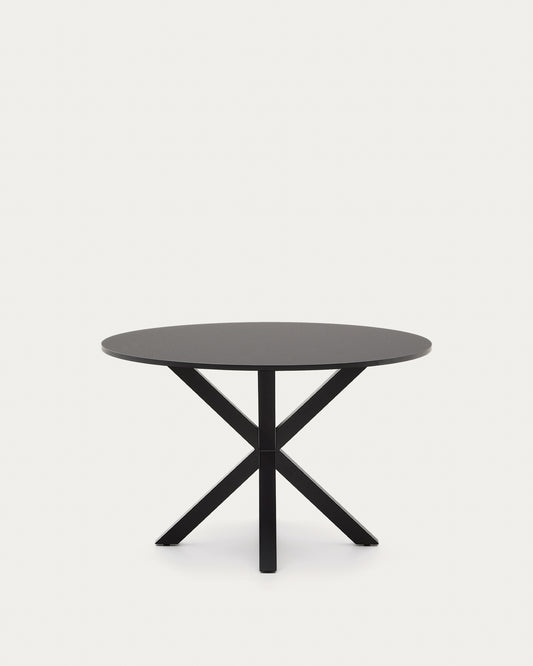 Argo round table in black lacquered MDF with steel legs with black finish Ø 120 cm