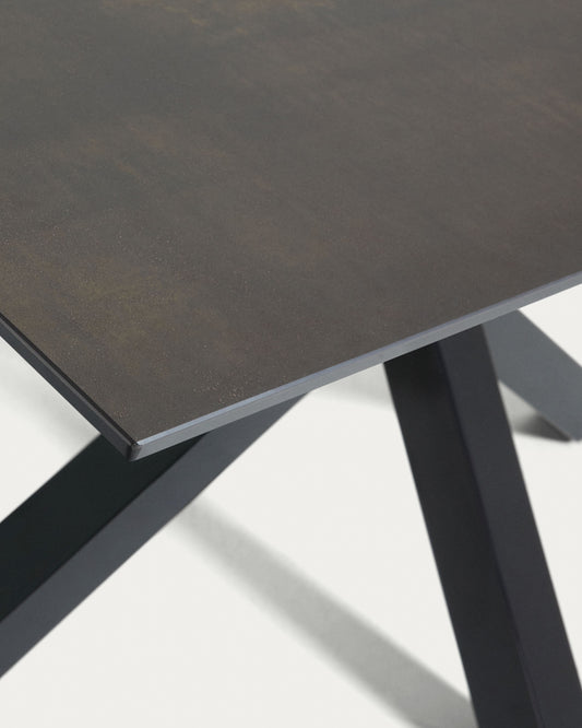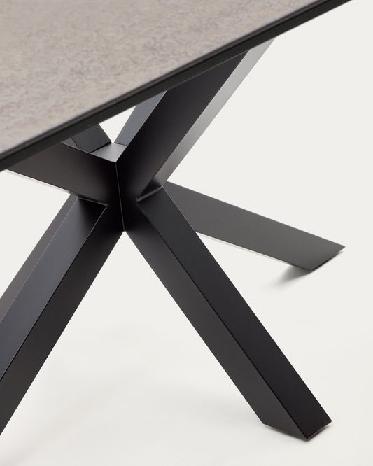 Argo table in Iron Moss porcelain and steel legs with black finish, 160 x 90 cm