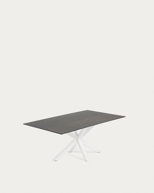 Argo table in Iron Moss porcelain and steel legs with white finish, 160 x 90 cm
