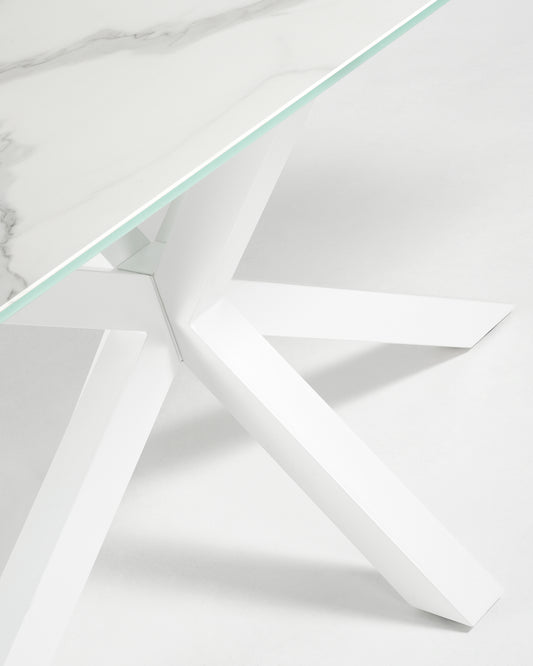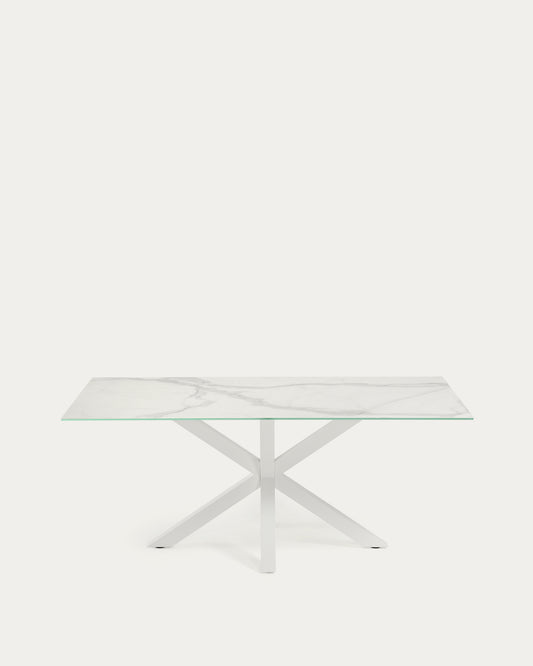 Argo table in white Kalos porcelain and steel legs with white finish, 160 x 90 cm