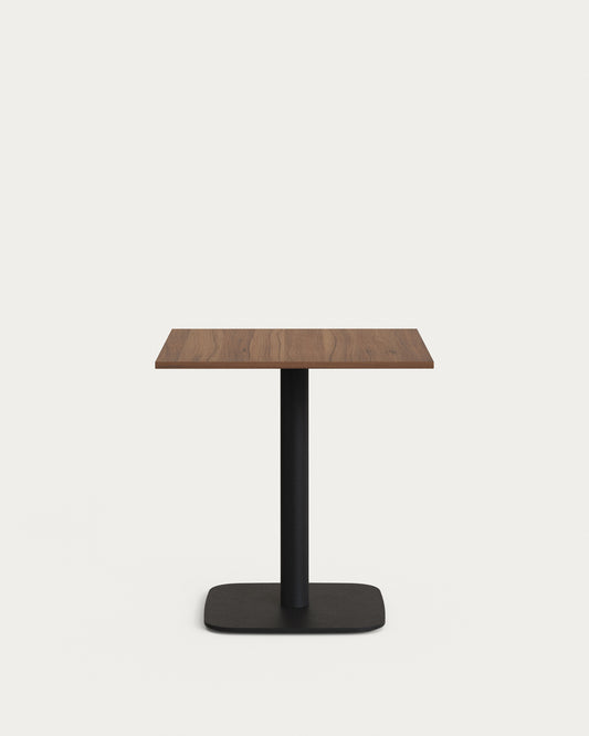 Dina table in walnut finish melamine with metal leg in a painted black finish, 70 x 70 x 70 cm