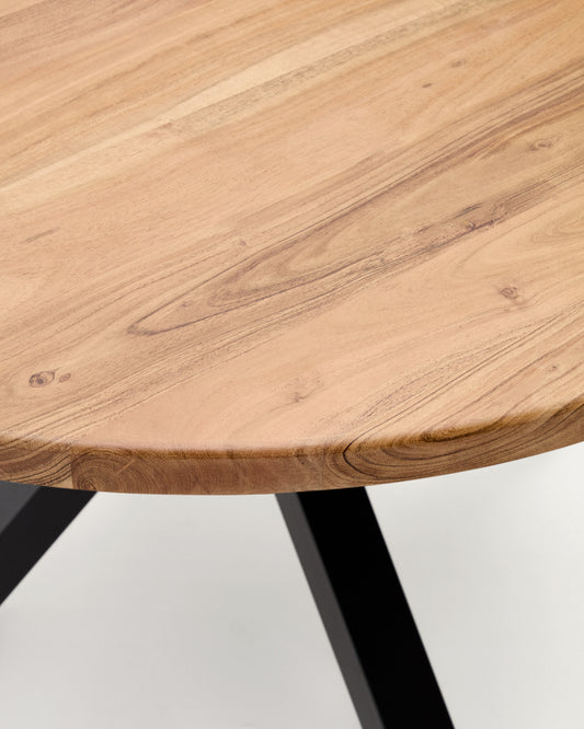 Round table Argo in solid acacia wood and steel legs with black finish Ø 150 cm