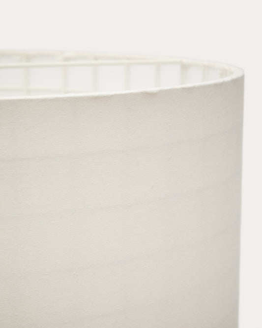 The Dulan ceiling lamp shade blends elegance and softness in a contemporary design that stands out for its simplicity and its ability to bring warmth to any environment. The cotton lamp shade is made of fine yarn that allows for a soft and enveloping diffusion of light. As well as being an aesthetic element, the cotton lamp shade is designed to soften the light, creating an intimate and relaxing atmosphere, perfect for relaxation areas, living rooms or even an office that requires a touch of warmth. It is compatible with E27 bulbs up to 15W (not included). Dulan can be easily combined with the rest of the collection, allowing you to create harmonious and visually attractive spaces. Its timeless design and minimalist aesthetic make this lamp a versatile piece that adapts to different decorative styles, adding a touch of sophistication and elegance.