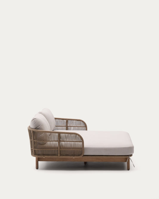 Catalina double sun lounger in beige rope cord and FSC 100% solid acacia wood