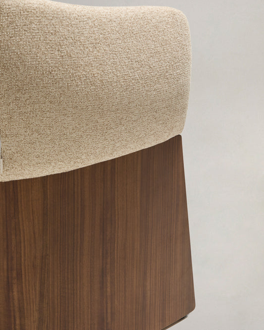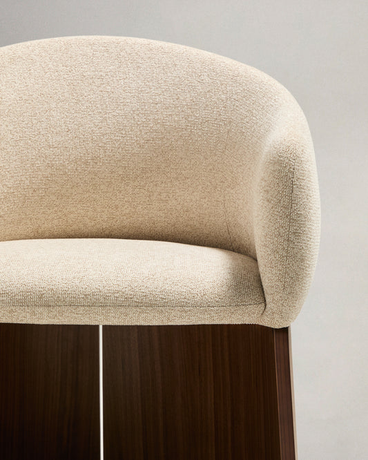 Bosca chair in beige chenille and walnut veneer FSC 100%