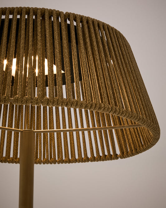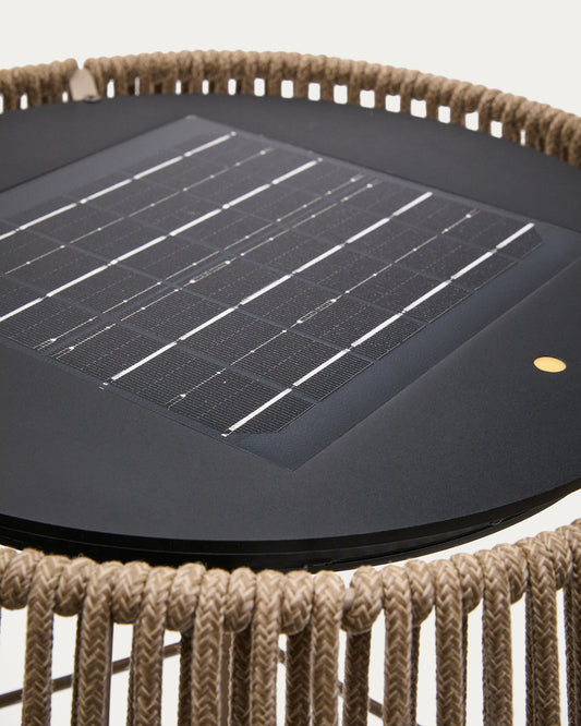 Aldet outdoor solar floor lamp in beige mottled rope cord with beige metal stand Ø46cm