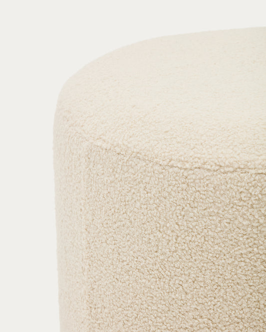 Kaeli footrest with removable cover in ecru bouclé Ø 60 cm